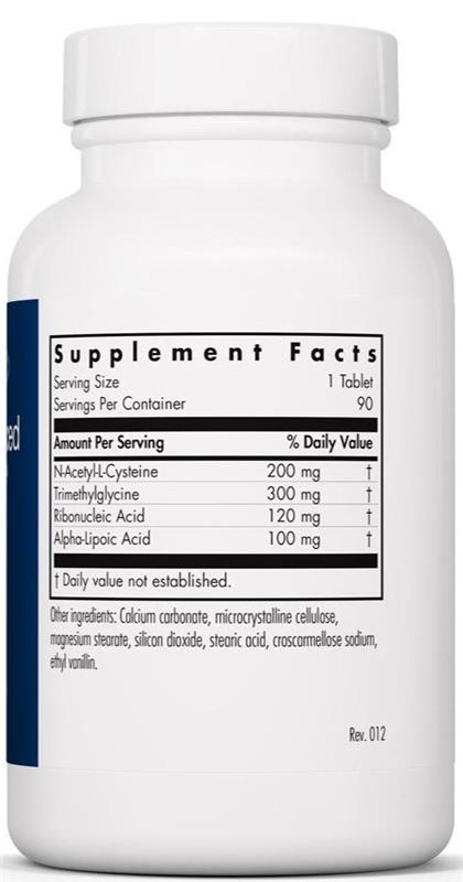 NAC enhanced antioxidant formula provides amino acids, nucleic acid and lipoic acid which together provide antioxidant activity and support glutathione production.