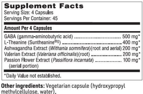 Sleep Support (Stress Support Complex) consists of a blend of sleep-promoting botanicals along with L-Theanine and GABA (gamma-amino butyric acid), a non-protein amino acid and a neurotransmitter that promotes relaxation.
